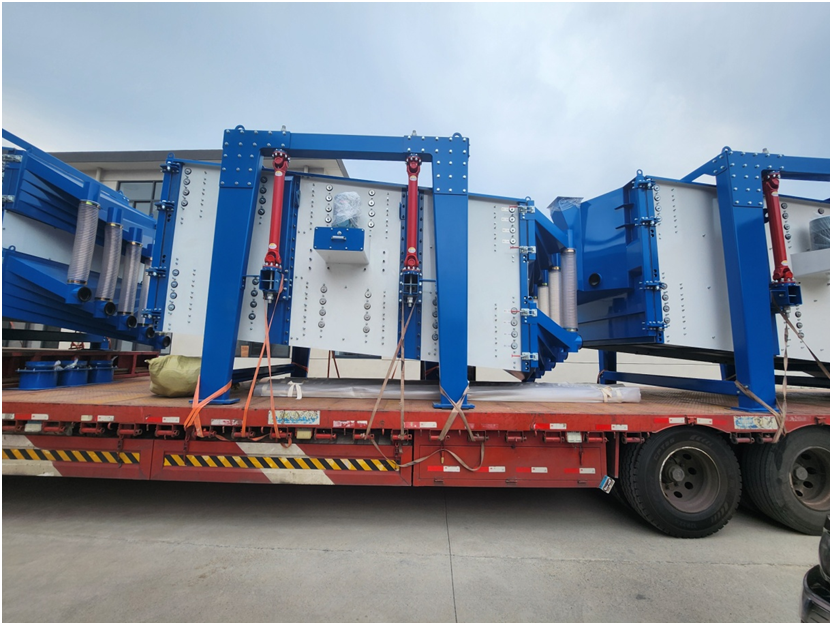 本次發(fā)貨的是客戶在原有的壓裂砂生產(chǎn)線增加篩分產(chǎn)能,新增加三臺2040型雙四層方形搖擺篩分系統(tǒng),由FU刮板機、篩分暫存?zhèn)}、流量控制蝶閥、散風(fēng)裝置及成品輸送系統(tǒng)組成。